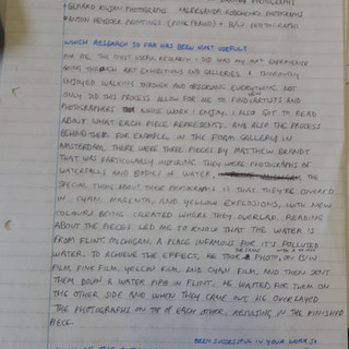 On Wednesday, I reflected on some feedback I received regarding my project proposal. The first piece of feedback I got was that the proposal was too long. I knew that it didn't fit into the word count anyway, I just wanted to write out a first draft. Although, in a process where every hour counts, there isn't much use in re-writing the proposal every time something changes. I was also told that it needs to be way more open. The fact that I had such a narrow and mechanical plan (something that I thought I wasn't doing until it was pointed out) is that it contradicts the fact that I said that I was experimental in my processes. The idea of the photography being introspective and all about self is great, but because I outlined everything so finely the examiner is going to see that I didn't leave room for any experimentation whatsoever. I was also told that I should be experimenting in every step of the way rather than just with the souping. For instance, shooting style, materials used, and methods. Basically, I shouldn't limit my output by naming a set amount of work to do. I was also given a piece of feedback which I'm having trouble accepting, which is to do more than just two series. In theory, that works well because I have a great selection of pieces to choose from, and I can choose my favourites to send in. However, practically speaking it might not be able to come to fruition because rolls of film are relatively expensive, so doing ten or 11 series could amount to quite a bit. We'll see though, there could be some opportunities for me on the way.