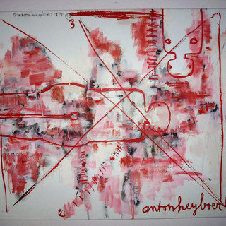 The second series of photographs is inspired by the Dutch painter Anton Heyboer. When I saw his work in a gallery, I read about his "Pink Period", which is a moment in his life where he covered paintings of his that he didn't like in pink and red paint. I thought that this could work well in a self image context. Since Anton also took black and white photographs, I thought it would be a good idea to take black and white self portraits, print them out large, and paint over the parts that I am not happy with with red/pink paint.