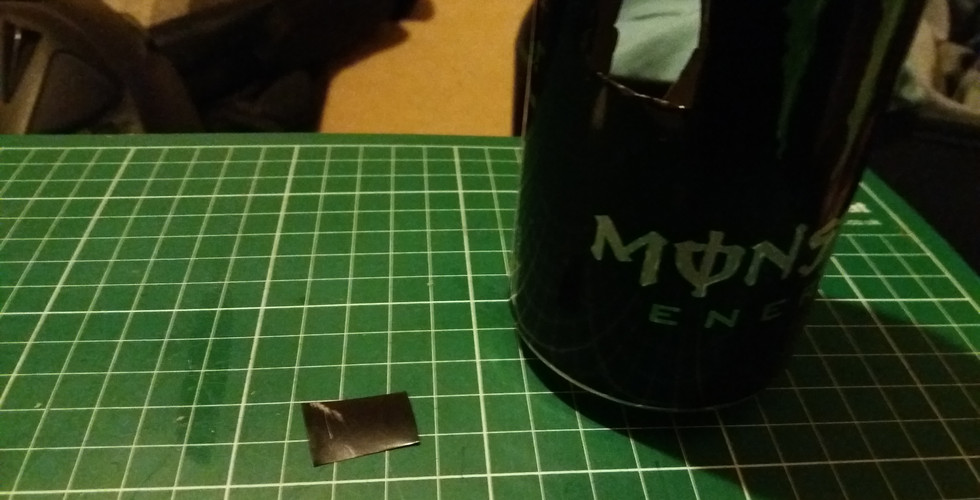 Afterward, you should cut out a small square out of an aluminium drinks can. Make sure this goes over the smaller hole on the front of your matchbox, because this is going to be your lens. You must then poke it in the middle with a pin. You don't want to go all the way through though, because the smaller the pinhole is, the sharper your image will be. The way to get the smallest hole possible is to press the pin into the metal until there is just a bump, and then sand it until there is a very tiny hole. I didn't have any sand paper available though, so I just slowly pressed the pin into the aluminium square bit by bit until I could see light through it. You must then tape it over the hole in the front of the matchbox. I made a bit of a mistake using a bit of aluminium with black printed on it, so I couldn't properly see where the hole was. I still managed to get it roughly in the center though. You must use black electricians tape though, to reduce the amount of light that gets in.